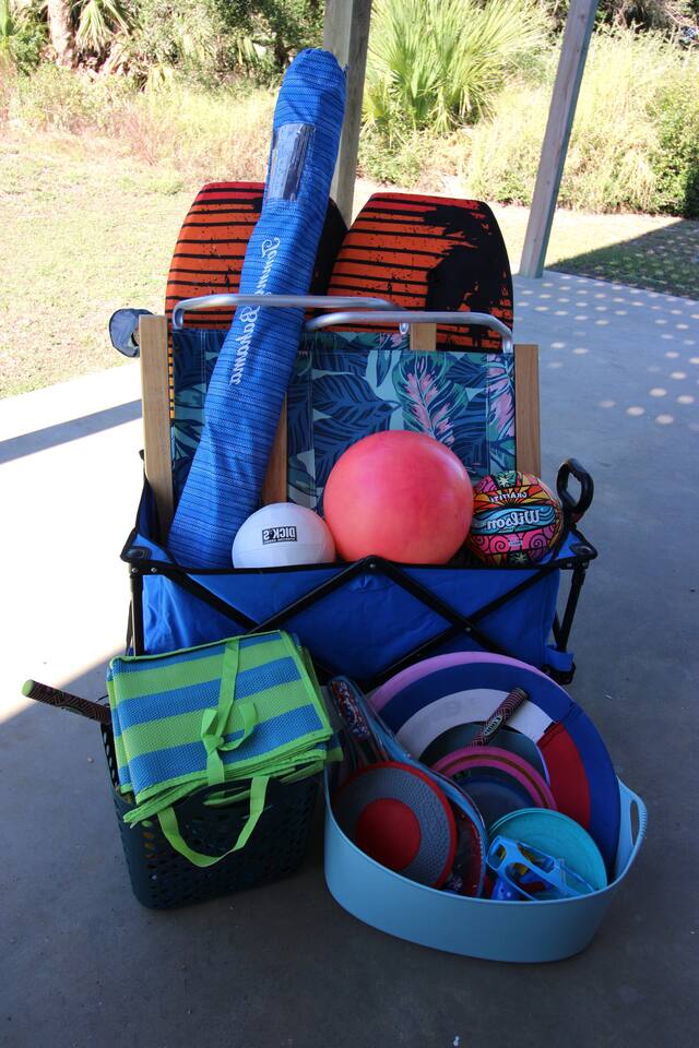 - Beach essentials Beach towels, umbrella, beach blanket, snorkeling gear